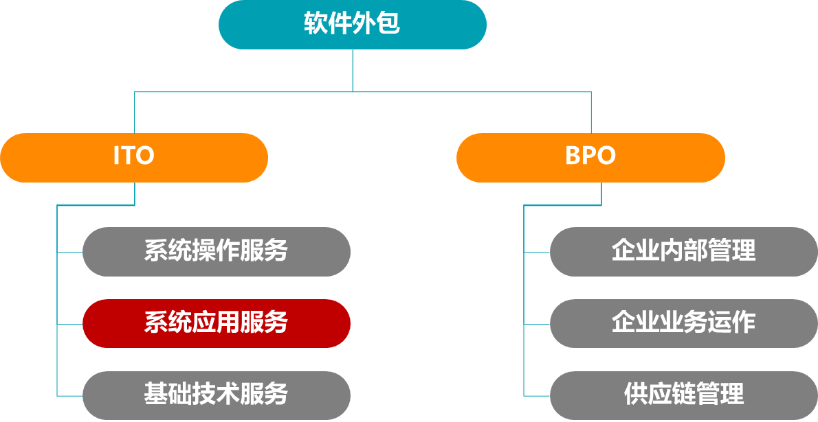 非核心IT業務外包部分被視為信息技術外包(ITO);而基于IT的業務流程外包部分稱為業務流程外包(BPO)。